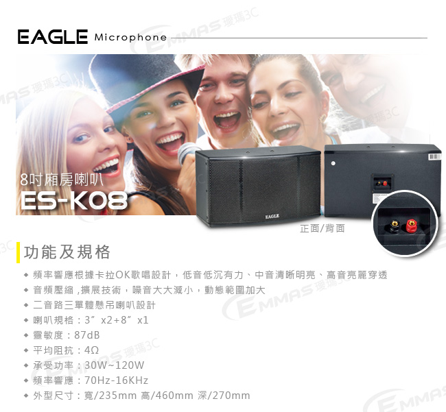 - 針對卡拉OK歌唱設計,人聲飽滿音質清晰透明