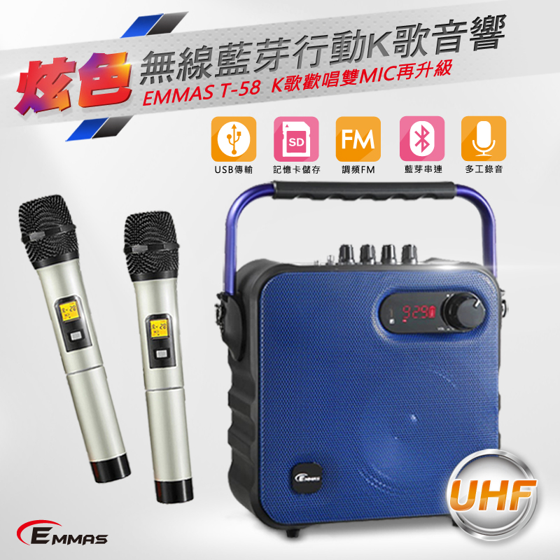 - 配件:主機、變壓器、無線麥克風*2、遙控器、說明書、保證卡、音源線、背帶。